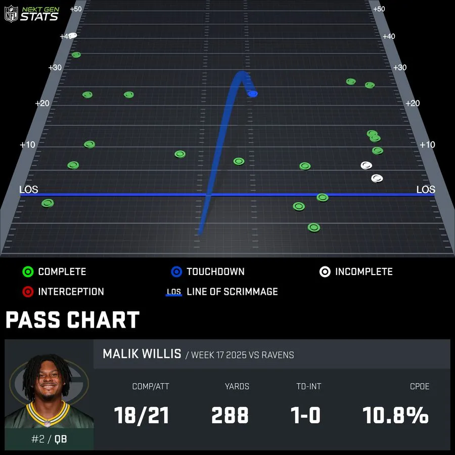 Tieto štatistiky nedržia nad vodou len dve-tri výnimočné sezóny – naopak, LaFleur dosiahol pozoruhodnú konzistentnosť rok čo rok. Len raz za sedem rokov skončila ofenzíva mimo top 10 v EPA/play (11. miesto v roku 2022). Navyše, vo viac než polovici sezón boli Packers v top 5 a v tomto roku sú dokonca na delenom prvom mieste spolu s New Englandom. Áno, v prvých rokoch mal k dispozícii budúceho člena Siene slávy, no zároveň dokázal vybudovať Jordana Lova na quarterbacka z top 10 v lige. A ak aj tieto mená na chvíľu odložíme bokom, stačí sa pozrieť na to, čo dokázal s Malikom Willisom počas krátkeho týždna prípravy len minulú sobotu: